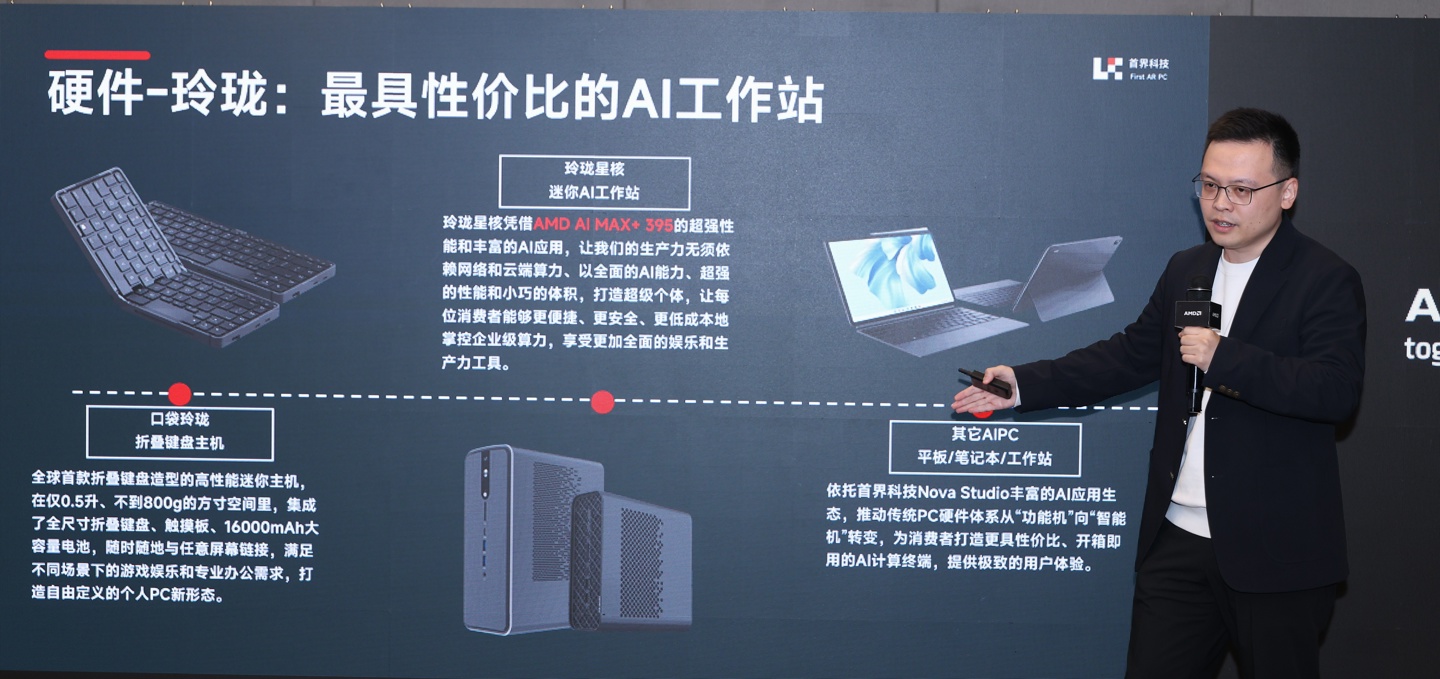 首界科技運(yùn)營(yíng)負(fù)責(zé)人邱添先生則分享了一系列搭載銳龍 AI Max+ 395 處理器的 AI 工作站“玲瓏”系列,以及如何電腦上通過配置 AI 智能體,將 AI 運(yùn)算精準(zhǔn)隔離在本地,保護(hù)用戶數(shù)據(jù)安全及隱私。