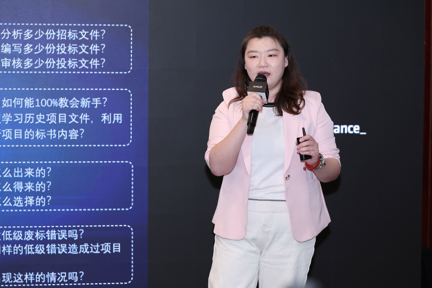 在下午的沙龍分享會(huì)上,賽博物聯(lián)市場(chǎng)總監(jiān)吳佳祺女士現(xiàn)場(chǎng)分享了搭載銳龍 AI Max+ 395 處理器的設(shè)備如何通過智能體應(yīng)用,幫助客戶實(shí)現(xiàn)高效精準(zhǔn)的標(biāo)書撰寫。