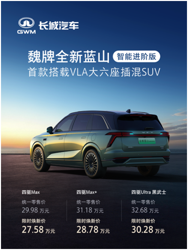 魏牌全新藍(lán)山智能進(jìn)階版在保定正式上市,以“初心不改,為愛進(jìn)階”為主題,推出限時煥新價27.58萬元起。這款定位為“首款搭載VLA大六座插混SUV”的車型,融合了VLA大模型與Hi4性能版智能四驅(qū)電混技術(shù),在智能駕駛、座艙體驗(yàn)和安全防護(hù)等多個維度實(shí)現(xiàn)全面升級,為用戶帶來全方位的出行解決方案。