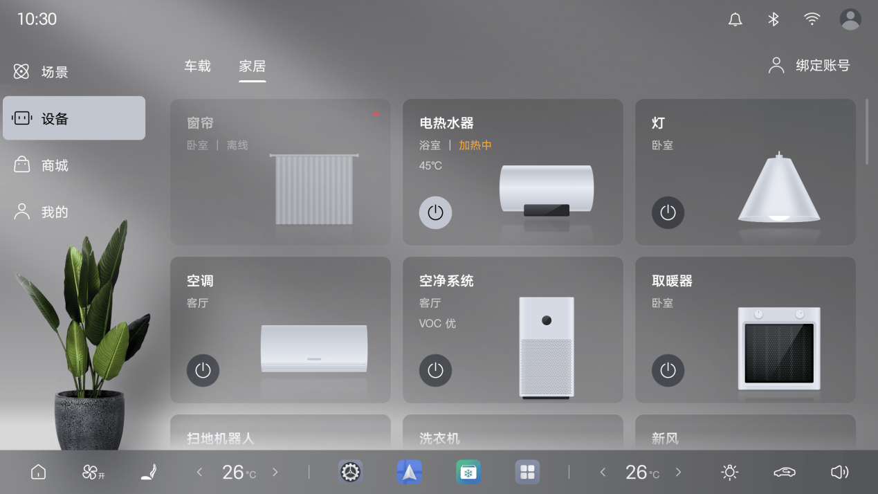 此次升級的一大亮點是新增了車家互聯(lián)功能,該功能以車輛為核心,與智能家居實現(xiàn)了深度聯(lián)動。用戶只需在智慧物聯(lián)App中綁定美居賬號,便可通過車機系統(tǒng)輕松控制家中的空調(diào)、燈光、窗簾、電熱水器、掃地機器人、取暖器、空氣凈化器以及新風(fēng)系統(tǒng)等8類主流美的品牌家電。同時,用戶還能通過美居App的家居場景一鍵備車,真正實現(xiàn)了人、車、家的無縫銜接,讓出行與生活更加便捷高效。