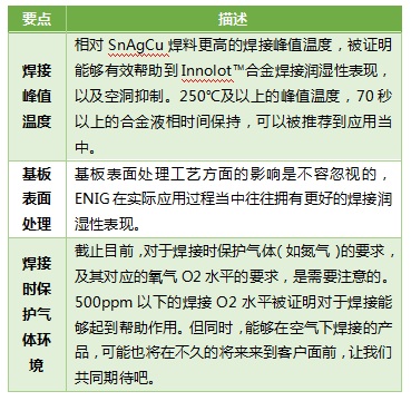 表2:Innolot™合金焊料應(yīng)用技術(shù)要點