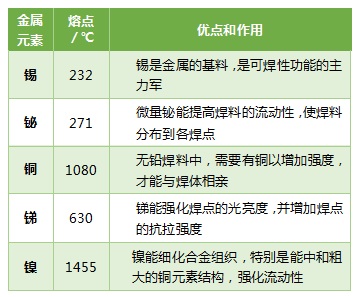 表1:錫焊料合金元素的性能優(yōu)點