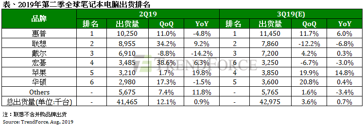 根據(jù)全球市場(chǎng)研究機(jī)構(gòu)集邦咨詢(xún)最新筆記本電腦出貨報(bào)告顯示,2019年第二季原本因?yàn)閷?duì)中美貿(mào)易摩擦與Intel CPU缺貨問(wèn)題的擔(dān)憂(yōu),導(dǎo)致整體市場(chǎng)展望趨于保守。