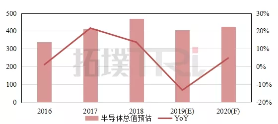圖:全球半導(dǎo)體產(chǎn)值預(yù)估Source:WSTS;拓墣產(chǎn)業(yè)研究院整理,2019/09