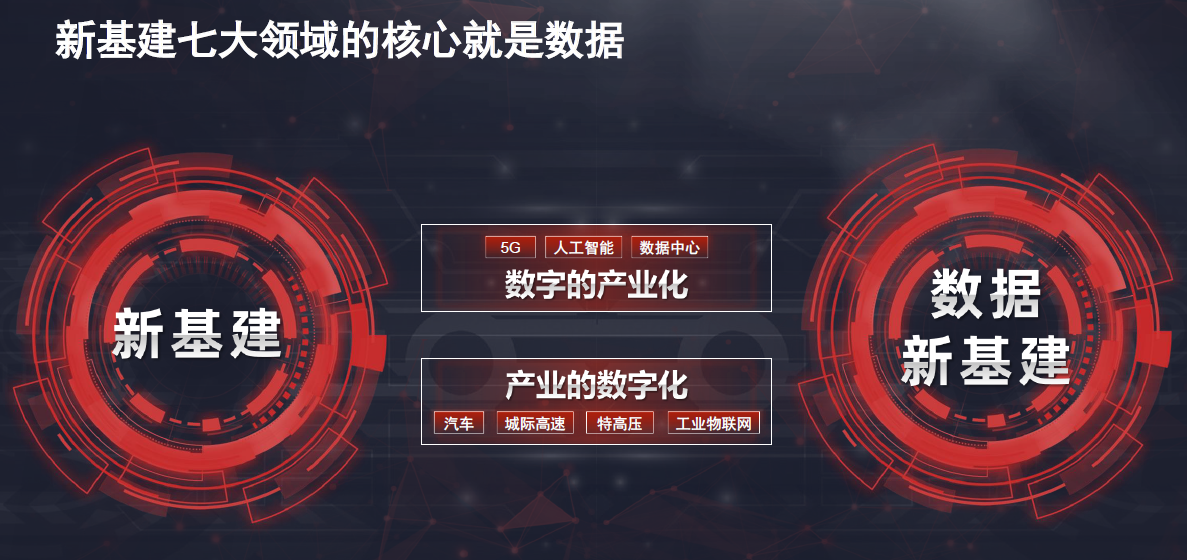 5G、人工智能(AI)、數(shù)據(jù)中心等新基建談的是數(shù)據(jù)的產(chǎn)業(yè)化,汽車、城際高速、特高壓、工業(yè)物聯(lián)網(wǎng)則談得是產(chǎn)業(yè)的數(shù)字化,這些新基建的核心都是數(shù)據(jù)。