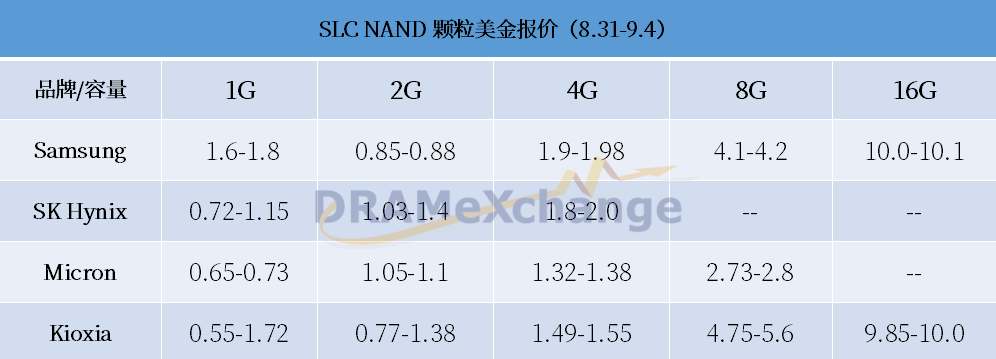 其中,Samsung SLC 2G部分仍有些許出貨賣壓,市場報價緩緩滑落,其余顆粒大致維持平盤格局。