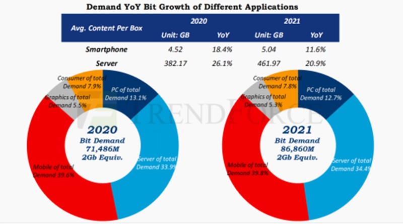 郭祚榮指出:不管是2020年還是2021年,行動式內存和服務器內存的需求加起來都超過70%,因此三星、SK海力士、美光的內存產品均以行動式內存和服務器內存為主。
