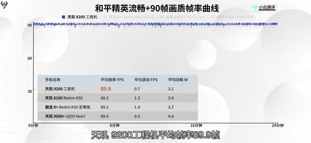 在《和平精英》90幀流暢畫質(zhì)測(cè)試中,天璣9200工程機(jī)在接近滿幀運(yùn)行的同時(shí),功耗僅3.1W,相比目前市面上的其他旗艦芯片機(jī)型功耗低近16%。