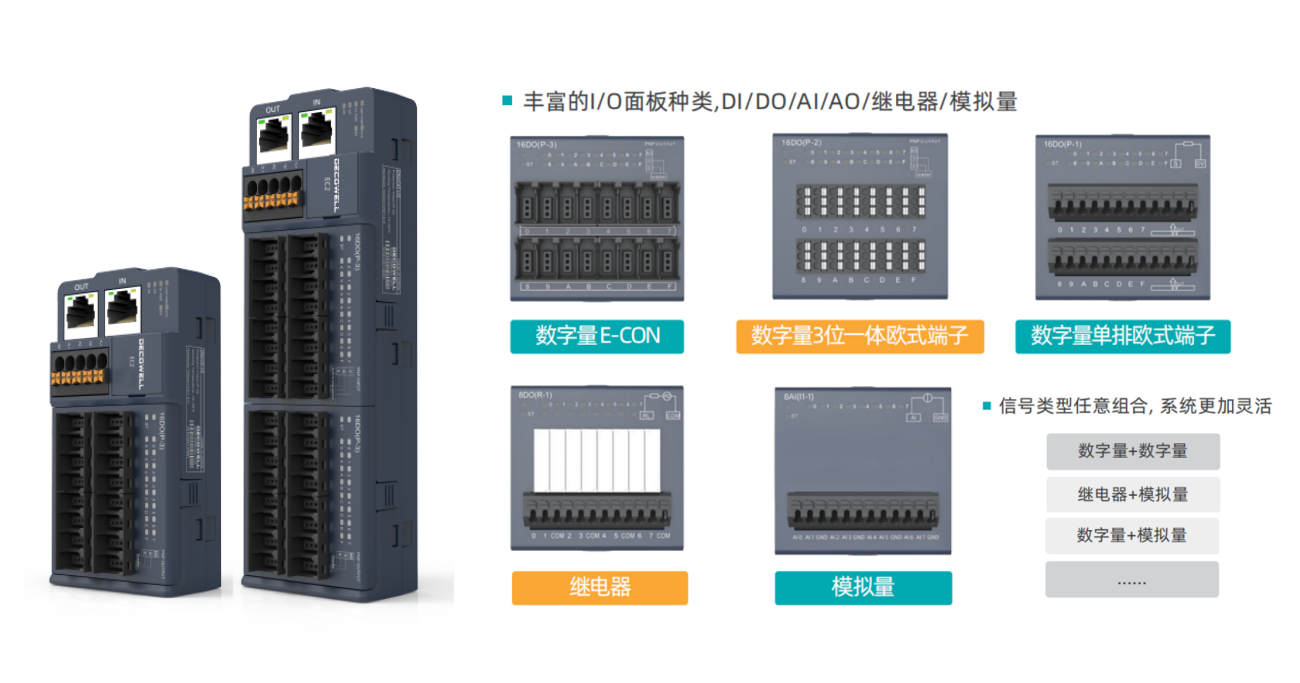 多功能擴展式模塊是新一代三段式卡片模塊,單片模塊薄至12mm,與傳統(tǒng)I/O相比,電柜體積縮小了超過60%;三段式的結構設計,端子可拆卸,模塊支持熱插拔;過流、防反接等多種保護;撥碼開關可快速分配設備名稱或站號,無需通過上位機軟件操作;支持模塊級和通道級別診斷,快速定位問題模塊;模塊種類豐富,包括數(shù)字量輸入輸出,模擬量輸入輸出,溫度采集,編碼器模塊,通訊模塊等,滿足客戶更多的方案搭配需求。安裝效率提升了約50%,加快了設備安裝和調試的速度,同樣可以有效縮短項目實施周期。其使用push-in端子,卡扣設計,免工具接線、安裝。模擬量穩(wěn)定,優(yōu)化的輸出量大大降低了設備的發(fā)熱量。