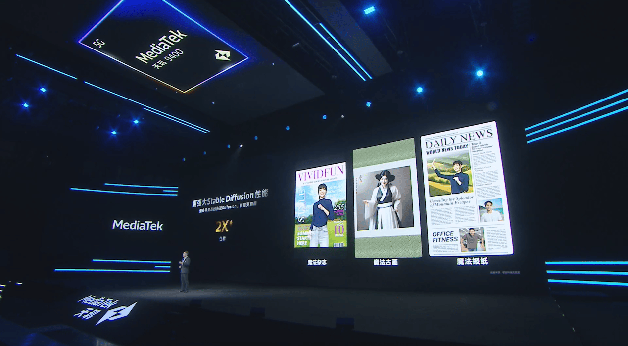聯(lián)發(fā)科還和小紅書深度合作,首發(fā)推出端側(cè)SDXL高清風格圖,可以將用戶的個人照片通過端側(cè)的AI處理生成各種風格的魔幻照片,而且相比云端平均生成時長還要快2倍,本地AI運算快速的優(yōu)勢體現(xiàn)出來了。