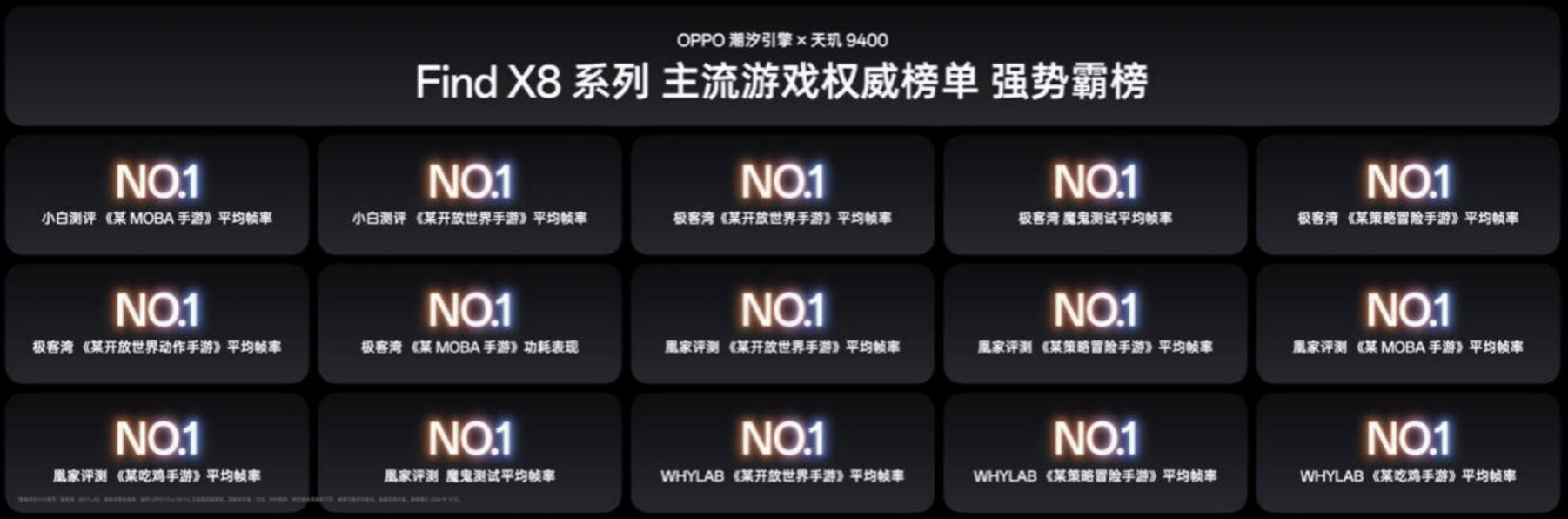 天璣9400是聯(lián)發(fā)科今年推出的最強大的旗艦芯片,憑借第二代全大核CPU架構和旗艦12核GPU G925,F(xiàn)ind X8系列在多項實測中表現(xiàn)卓越。特別是在圖形性能方面,天璣9400帶來了旗艦最強的GPU性能,拿下手機GPU性能和能效表現(xiàn)雙冠王,媒體和網(wǎng)友稱之為“三體科技”!是當之無愧的GPU王者。結合OPPO的潮汐引擎,F(xiàn)ind X8系列實現(xiàn)了滿幀低功耗的游戲體驗,在多家權威媒體的測試中,獲得了霸榜“游戲流暢度TOP1”的好成績。