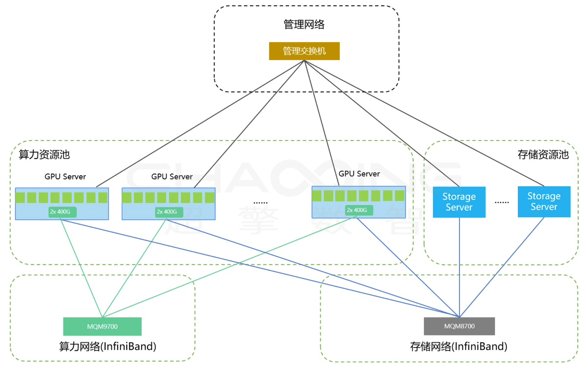 - 存儲(chǔ)網(wǎng)絡(luò):基于 Infiniband MQM8700 交換機(jī),加速大規(guī)模數(shù)據(jù)加載,支撐 AI 訓(xùn)練。