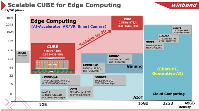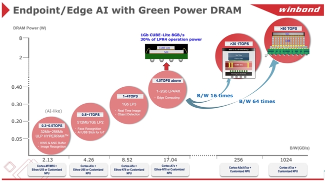 隨著 LPDDR6 預計在 2026 年突破 150 GB/s 的帶寬,低功耗內存正朝向更高的傳輸效率與能源效益邁進,以應對 AI 智能型手機與嵌入式 AI 加速器所面臨的挑戰(zhàn)。華邦正在研發(fā)小容量的 DDR5 和 LPDDR4 解決方案,以便對功耗要求應用進行優(yōu)化。同時,華邦推出了 CUBE 內存,旨在實現超過 1 TB/s 的帶寬并降低熱耗散。