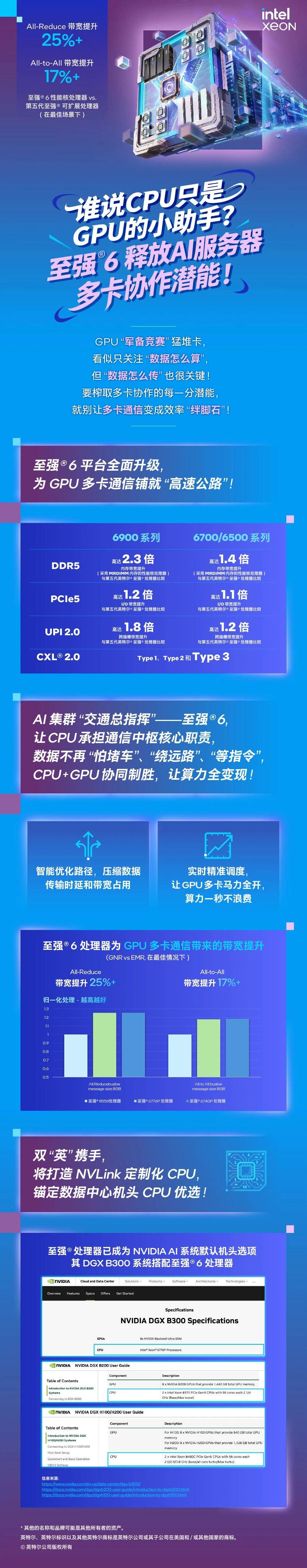 收益看到了,要付出什么也很清晰,也許你想進一步深究至強6提升多卡互連與通信效率的秘籍,那下面這一張圖就足以揭示它的底氣所在。