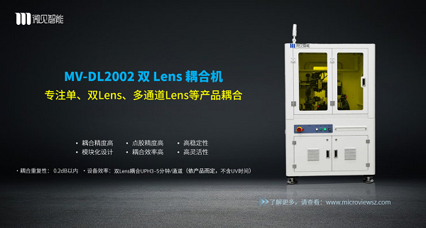 專為單/雙/多通道Lens等產品耦合打造,采用高精度納米級的運動滑臺,能滿足客戶更好耦合精度的需求,耦合重復性<0.20dB; Lens采用高精度吸嘴或電動夾爪,帶光柵尺自反饋,穩(wěn)定性好,能滿足不同產品類型生產需求。點膠及UV組件采用高精度電機模組,結構簡化,點膠精度高;模塊化設計,可以根據(jù)客戶需求快速靈活組合出最佳方案的設備。配置自研智能耦合算法,能快速找到最佳耦合點,耦合效率高。
