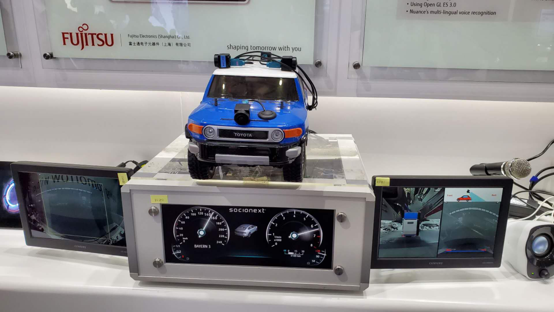 回顧汽車發(fā)展歷史,汽車儀表顯示從以往的機(jī)械式,已過(guò)渡為當(dāng)下的電子式虛擬儀表,下一步則將融合多個(gè)顯示界面、趨于統(tǒng)一化,因此對(duì)性能、可靠性等要求愈發(fā)嚴(yán)苛。過(guò)去幾年,富士通代理品牌索喜科技基于ARM雙核Cortex-A9的Triton C芯片為核心的3D全虛擬儀表解決方案已經(jīng)出貨數(shù)十萬(wàn)套,成功應(yīng)用在比亞迪以及部分日系、德系車型上。經(jīng)過(guò)多年的市場(chǎng)驗(yàn)證,索喜科技繼而推出全新升級(jí)的第四代高性能車載SoC——“Miranda”。工作人員向筆者介紹:“采用ARM Cotex-A9 Quad core 1GHz單芯片CPU、PowerVR S8XE 3D GPU,并帶有專為ADAS應(yīng)用準(zhǔn)備的VPU及H.264視頻編解碼功能,Miranda可支持高清4路1080P行車記錄儀的性能需求,且功耗較低,因此特別適合車載SoC的使用場(chǎng)景。”基于這一款SoC,系統(tǒng)設(shè)計(jì)者可輕松打造高清全液晶儀表,高清360°全景成像和ADAS輔助系統(tǒng)的三合一解決方案!