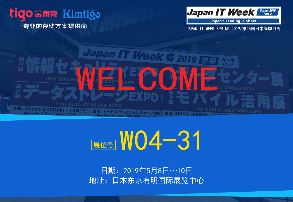 2019年5月8日至10日,第28屆Japan IT Week春季展在日本東京有明國際展覽中心舉行,金泰克作為參展商之一,誠邀您相約W04-31展位,共同品鑒金泰克全系列存儲產(chǎn)品。