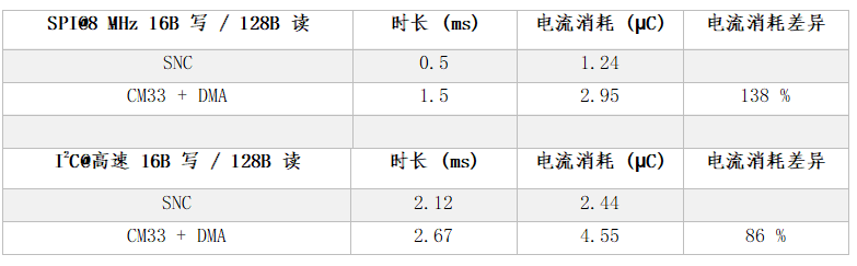 表1描述了傳輸小型SPI或I2C數(shù)據(jù)事務(wù)(如寫(xiě)/讀16/128字節(jié))時(shí)的能耗。