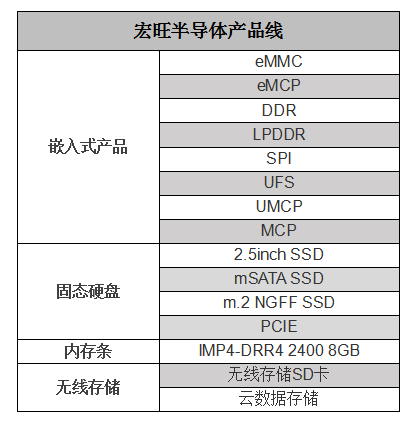 經(jīng)過十五年的發(fā)展,宏旺半導(dǎo)體產(chǎn)品線日臻完善, 并與多家行業(yè)內(nèi)知名企業(yè)建立了戰(zhàn)略合作關(guān)系。旗下產(chǎn)品線分為六大類:嵌入式、移動存儲、微存儲、SSD、內(nèi)存、車載電子,產(chǎn)品型號包含了EMMC、EMCP、UFS、UMCP、SPI、LPDDR、DDR、SSD、內(nèi)存、TF,廣泛應(yīng)用于手持移動終端、消費類電子產(chǎn)品、電腦及周邊、醫(yī)療、辦公、汽車電子及工業(yè)控制等設(shè)備的各個領(lǐng)域,為客戶提供更專業(yè)化和個性化的產(chǎn)品解決方案。2019計劃向AI、VR、5G、IOT、車載、智能穿戴等領(lǐng)域全面發(fā)力,大步邁進存儲T時代,充分滿足市場對大容量、高性能的存儲需要。
