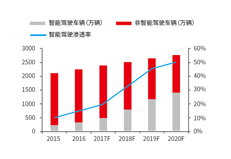 根據(jù)發(fā)改委《智能汽車創(chuàng)新發(fā)展戰(zhàn)略》征求意見稿,到2020年,智能汽車新車占比達到50%。汽車智能化發(fā)展將極大改變汽車對于數(shù)據(jù)存儲的需求。預(yù)測到2020年,每輛車對NAND Flash平均容量需求將增加到200GB,而無人駕駛汽車對NAND Flash存儲量將在TB級以上。