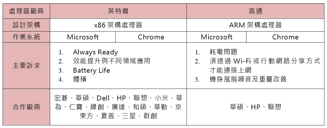 ▲英特爾與高通常時(shí)連網(wǎng)筆記本電腦比較。(Source:拓墣產(chǎn)業(yè)研究院整理,2019.5)