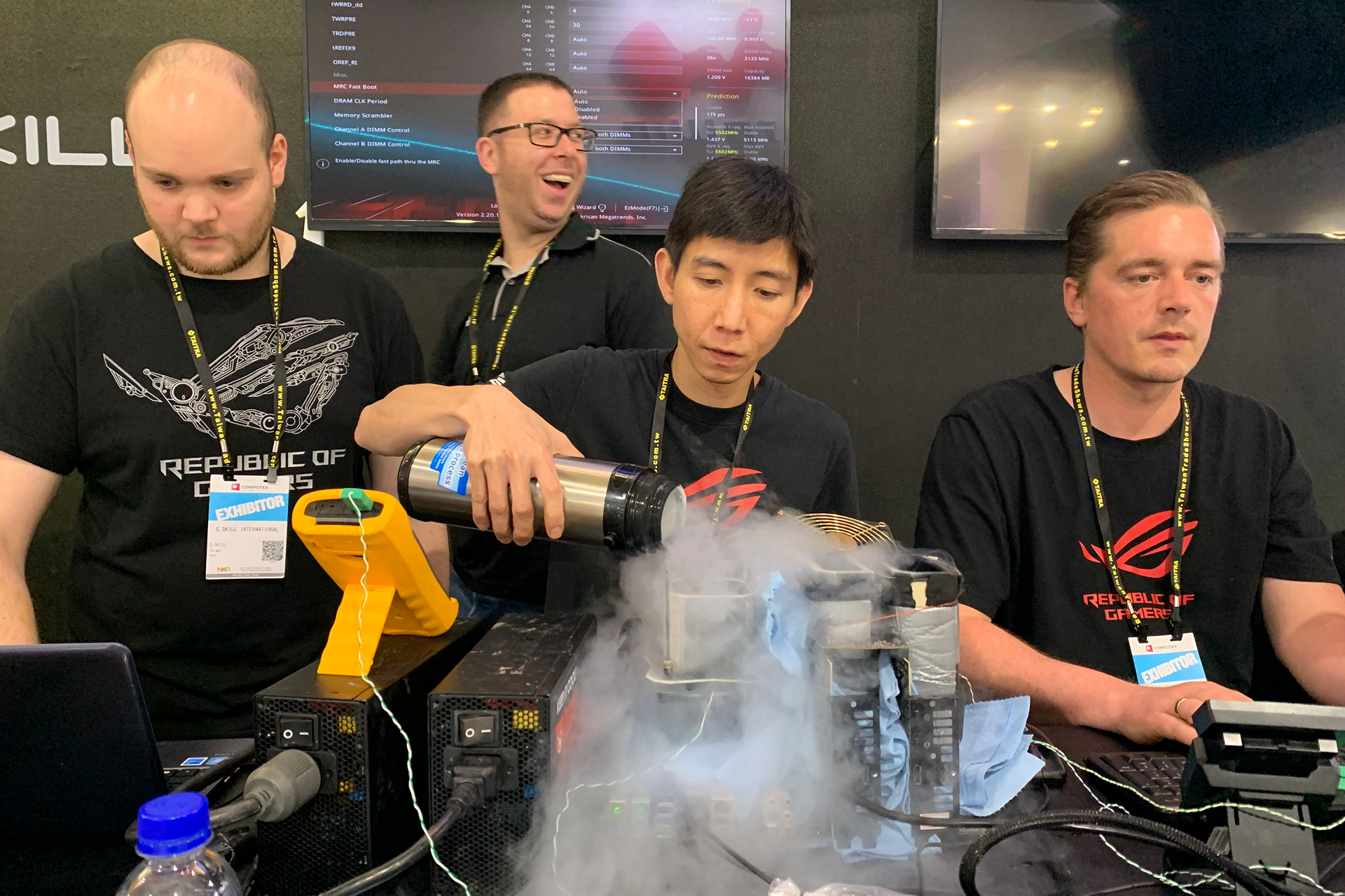 芝奇特別感謝Intel、ASUS、ASRock、 EVGA和MSI打造出的夢幻電腦硬件,以及由15名來自全球的傳奇超頻選手,以精湛的BIOS調(diào)教功力及近攝氏零下200度的液氮超頻技術(shù),于Computex 2019展覽前后期間,成功突破了高達(dá)23項的世界超頻紀(jì)錄。其中知名顯示卡超頻傳奇K|ngp|n同時使用了4張EVGA GeForce GTX 1080 Ti K|ngp|n高端顯示卡以及 Intel Core i9-9980XE處理器,成功以38665的成績創(chuàng)下3DMark Time Spy新超頻紀(jì)錄。