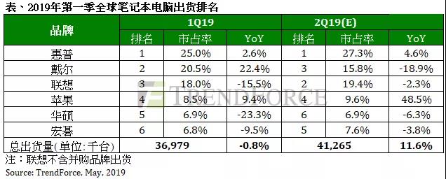根據(jù)全球市場研究機構(gòu)集邦咨詢(TrendForce)最新筆記本電腦出貨報告顯示,盡管2019年第一季CPU仍處于供貨不足狀態(tài),但筆記本電腦市場整體并未受到太大沖擊。第一季全球筆記本電腦出貨量達3697萬臺,與去年同期的3727萬臺相比僅衰退0.8%。