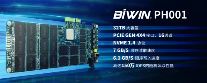 BIWIN PH001容量高達(dá)32TB,采用PCIe Gen 4x4接口、NVMe 1.4協(xié)議,擁有16個NAND通道,針對低延遲存儲類內(nèi)存(SCM)進(jìn)行了優(yōu)化,達(dá)到最高7GB/s的順序讀取速度和6.1GB/s的順序?qū)懭胨俣?,隨機(jī)讀取性能高達(dá)150萬IOPS,同時加入了AES 256加密引擎、TCG Opal support、SRAM ECC等多項技術(shù)。BIWIN PH001支持端到端的數(shù)據(jù)保護(hù),在寫入數(shù)據(jù)時生成校驗碼與用戶數(shù)據(jù)一并寫入閃存,讀取時則通過校驗碼檢驗用戶數(shù)據(jù)是否完整,在SSD內(nèi)各部件之間傳輸與存儲過程中是否有錯誤發(fā)生,從而提高數(shù)據(jù)可靠性。