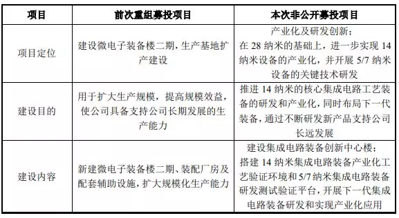 除上述差異外,本次募投項(xiàng)目之一的“高端集成電路裝備研發(fā)及產(chǎn)業(yè)化項(xiàng)目”與前次募投項(xiàng)目“微電子裝備擴(kuò)產(chǎn)項(xiàng)目”在項(xiàng)目定位、建設(shè)目的、建設(shè)內(nèi)容等方面有所不同,具體情況如下: