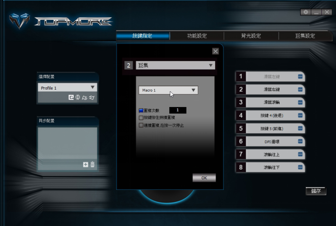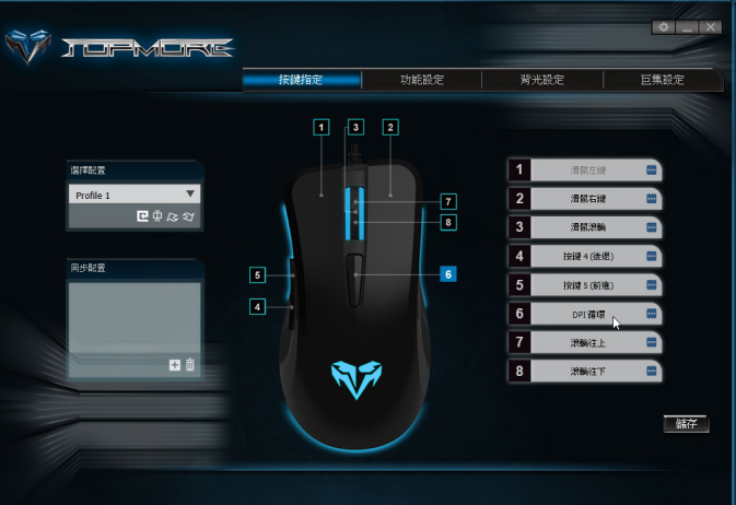在滑鼠功能設定上,達墨也提供了強大且便利的設定軟體,方便使用者快速設定滑鼠的各項功能,從按鍵指定、背光、滑鼠解析度到巨集設定等等都能一應俱全。