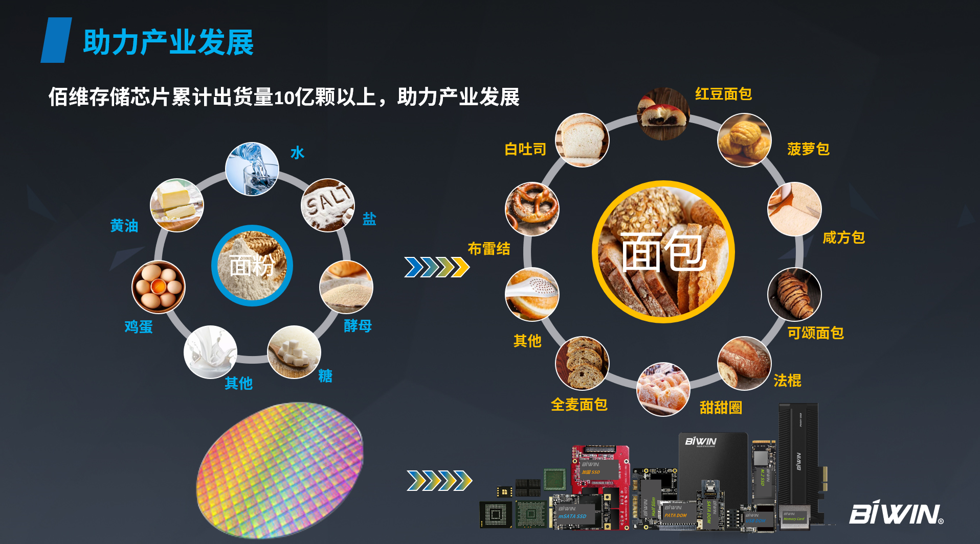 何總借助“面粉”和“面包”來形象比喻佰維在整個(gè)存儲(chǔ)市場的位置:佰維作為掌握關(guān)鍵技能的“專業(yè)廚師”,從原廠購入原料,根據(jù)客戶的細(xì)分需求提供款式齊全、口味多樣的“面包”,在市場中實(shí)現(xiàn)商業(yè)價(jià)值,反哺整個(gè)存儲(chǔ)生態(tài),與各大原廠、平臺(tái)廠商、合作伙伴一起構(gòu)建共贏(Bi-Win)的存儲(chǔ)生態(tài)體系。