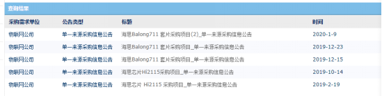 據(jù)了解,海思半導體的視頻解碼芯片、電視芯片、機頂盒芯片等此前就已對外銷售,且已在這些領域取得不俗的成績,但基帶芯片此前基本僅供華為自用。然而,2019年10月上海海思對外推出Balong 711,近期中國移動三次發(fā)布海思Balong 711采購項目信息,可見華為正在加快海思芯片對外的開放力度。