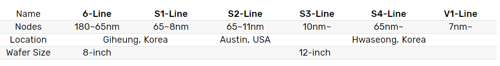 隨著V1生產線的投入使用,三星目前在韓國和美國共有6條晶圓代工生產線,其中包括5條12英寸生產線和1條8英寸生產線。