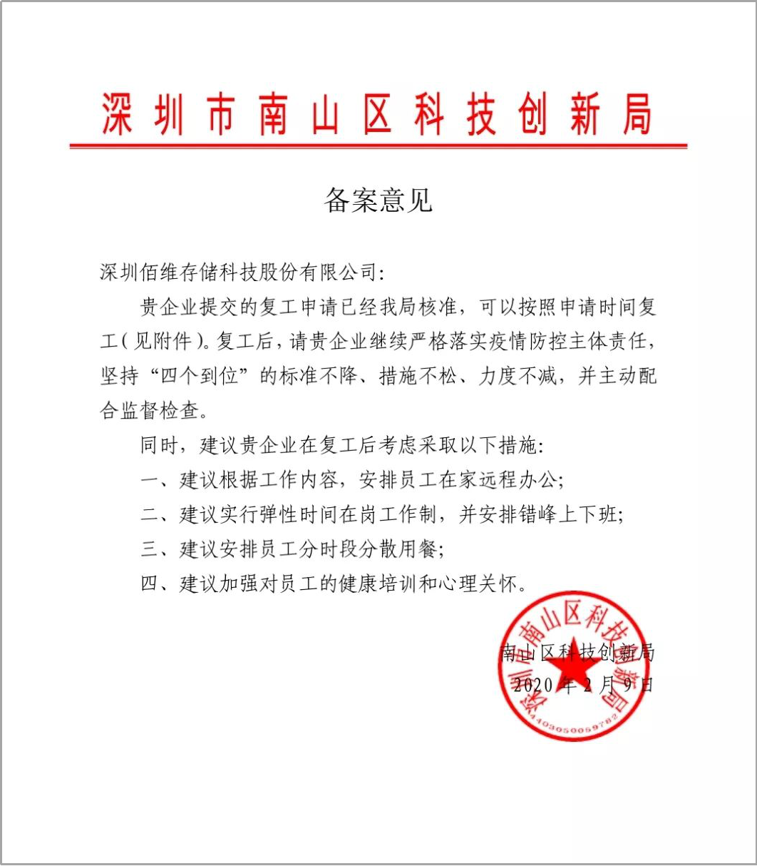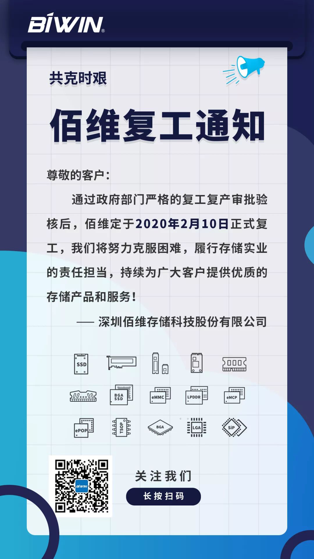 半導體聯(lián)盟消息,佰維在通過政府部門嚴格的復工復產(chǎn)審批驗核后,于今日(2月10日)正式復工。面對疫情嚴峻形勢,佰維高度重視,嚴格遵守政府部門關(guān)于嚴格落實疫情防控主體責任的復工要求,全力配合做好疫情防控。
