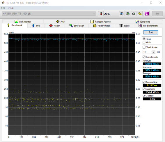 惠普實驗室HD Tune Pro全盤穩(wěn)定讀取測試