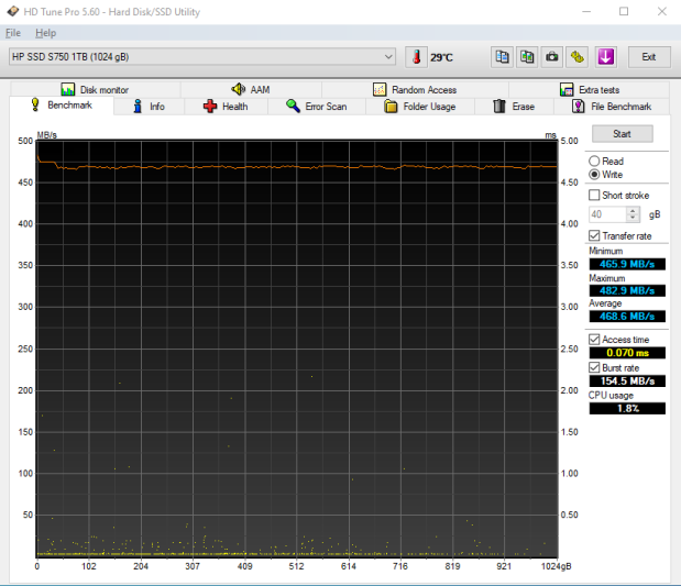 惠普實驗室HD Tune Pro全盤穩(wěn)定寫入測試