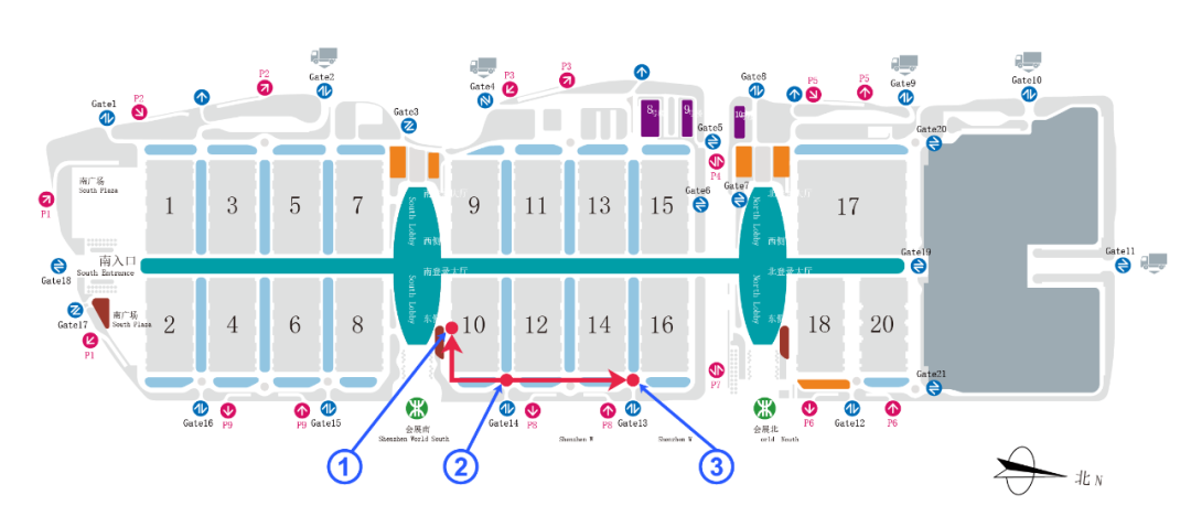 電瓶車上下落車點:展會主辦方在停車場區(qū)域安排了電瓶車在下圖1、2、3位置進(jìn)行接駁: