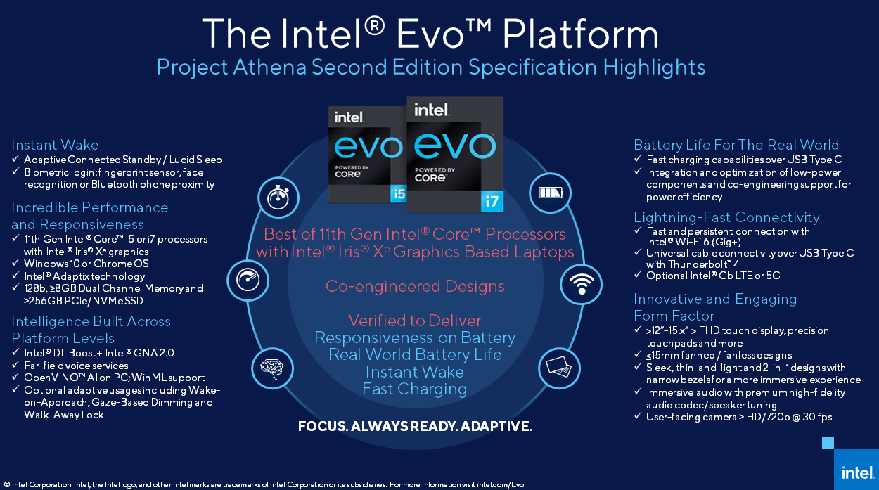 與第11代酷睿處理器同步,英特爾還推出了自有的Evo平臺品牌。