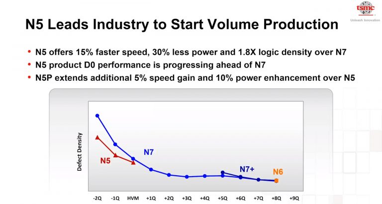 通常半導(dǎo)體制程良率是隨著時(shí)間而下降,并獲得更高的產(chǎn)量,也就是學(xué)習(xí)曲線的概念。不過臺(tái)積電表示,盡管5納米是更先進(jìn)的制程,但學(xué)習(xí)曲線表現(xiàn)比7納米更好,使量產(chǎn)非常順利,而5納米強(qiáng)化版制程N(yùn)5P也即將于明年開始量產(chǎn),性能將再度提高5%,或功耗降低10%。