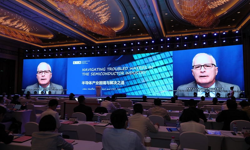 工業(yè)和信息化部電子信息司副司長楊旭東,上海市人民政府副秘書長陳鳴波,中國半導(dǎo)體行業(yè)協(xié)會理事長、中芯國際集成電路制造有限公司董事長周子學(xué)出席開幕式并致辭。美國半導(dǎo)體行業(yè)協(xié)會輪值主席、安森美半導(dǎo)體總裁兼CEO Keith D.Jackson(傑克信)特別發(fā)來視頻致辭。開幕式由中國半導(dǎo)體行業(yè)協(xié)會常務(wù)副理事長、中國電子信息產(chǎn)業(yè)發(fā)展研究院院長張立主持。