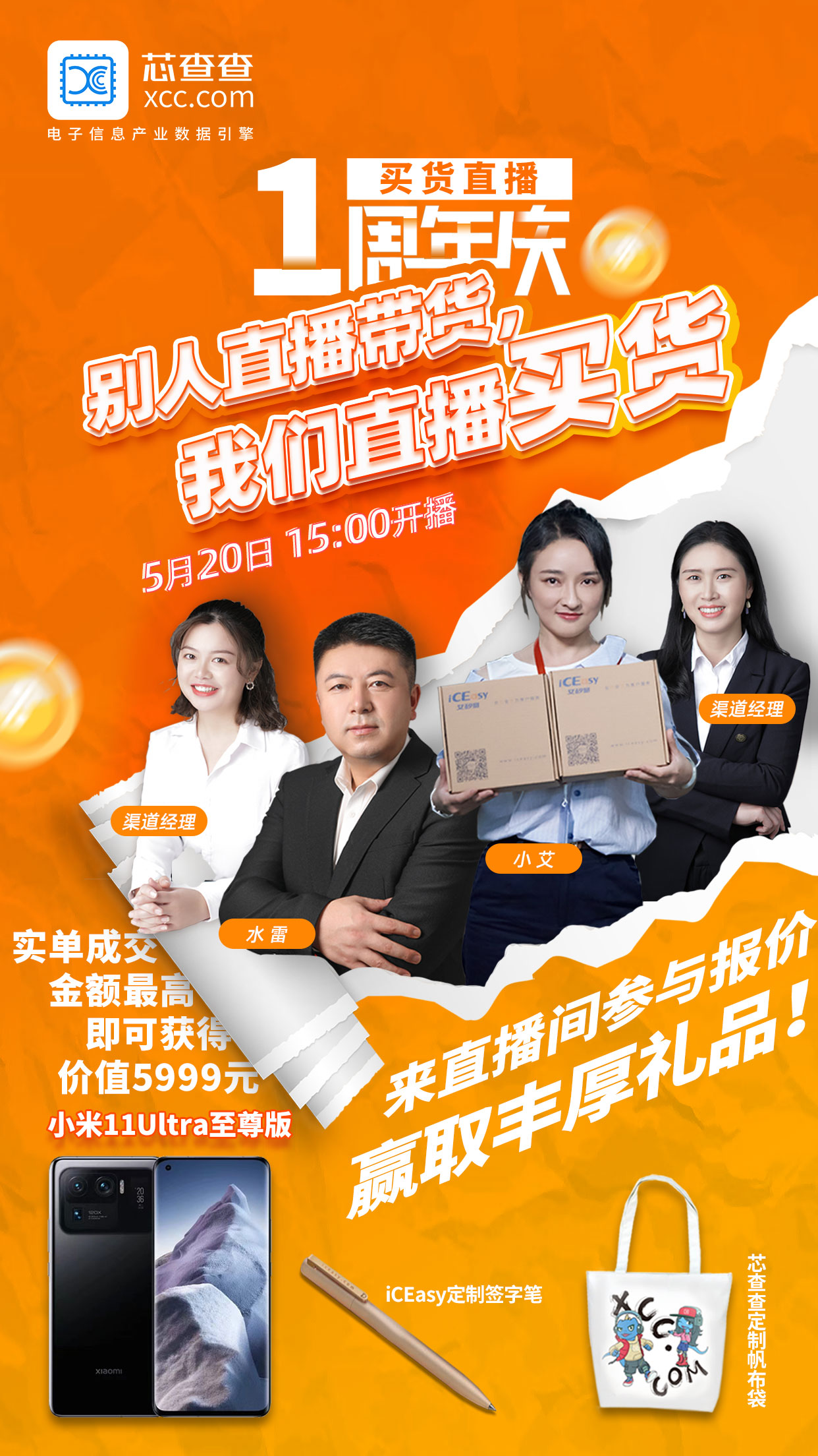 5月20日,直播買貨風(fēng)雨兼程一周年,同時迎來發(fā)展史上的又一個里程碑——進(jìn)駐電子信息產(chǎn)業(yè)數(shù)據(jù)引擎芯查查APP直播版塊,在更大的平臺上持續(xù)為供應(yīng)鏈創(chuàng)造價值。