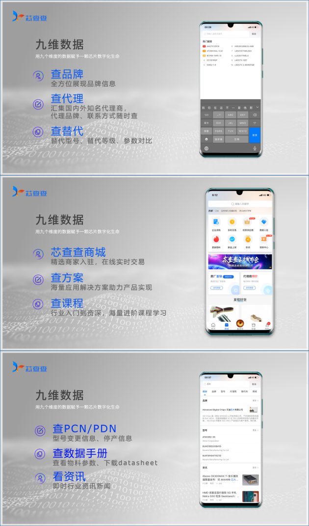 在C端,電子信息產(chǎn)業(yè)數(shù)據(jù)引擎 電子人的數(shù)字化家園芯查查APP是芯查查面向C端推出的首款數(shù)據(jù)綜合應(yīng)用,自從3月1日上線以來,匯聚了大量芯片型號數(shù)據(jù)、Datasheet數(shù)據(jù)、精選替代料、海量管控物料清單、數(shù)以萬計的視頻課程和方案、聚集行業(yè)熱門直播等,為電子信息產(chǎn)業(yè)從業(yè)人員提供查芯片、查價格、找替代、查方案、查課程、查/看直播、查企業(yè)、查代理、查專利、查資訊、查展會等信息數(shù)據(jù)。同時,芯查查APP還推出芯查查商城版塊,為供應(yīng)商和采購商提供行業(yè)第三方在線交易商城;APP內(nèi)的電子人社交元宇宙“X星球”更是為電子人打造了一個促進(jìn)交流、拓展人脈的專屬社交圈,為國內(nèi)半導(dǎo)體產(chǎn)業(yè)鏈提供了一個集數(shù)據(jù)、社交、交易為一體的多功能平臺。