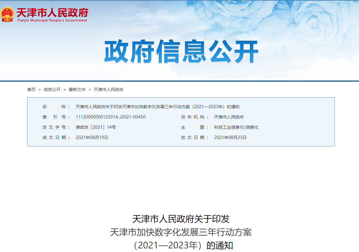 圖片來(lái)源:天津市人民政府官網(wǎng)截圖