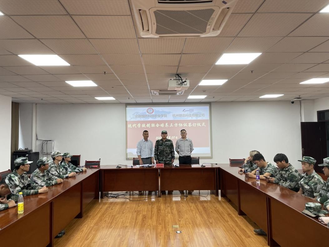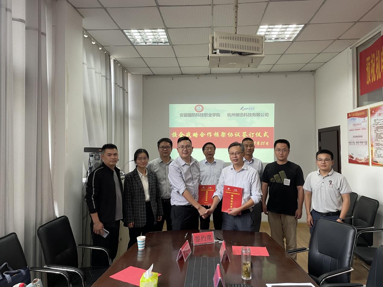 9月28日,杭州朗迅科技有限公司和安徽國防科技職業(yè)學(xué)院校企合作及現(xiàn)代學(xué)徒制聯(lián)合培養(yǎng)簽約儀式隆重舉行。安徽國防科技職業(yè)學(xué)院電氣技術(shù)學(xué)院院長李翔,黨總支書記,葉啟衡副院長江治國等領(lǐng)導(dǎo),杭州朗迅科技有限公司代表蔣益欽等人出席儀式。