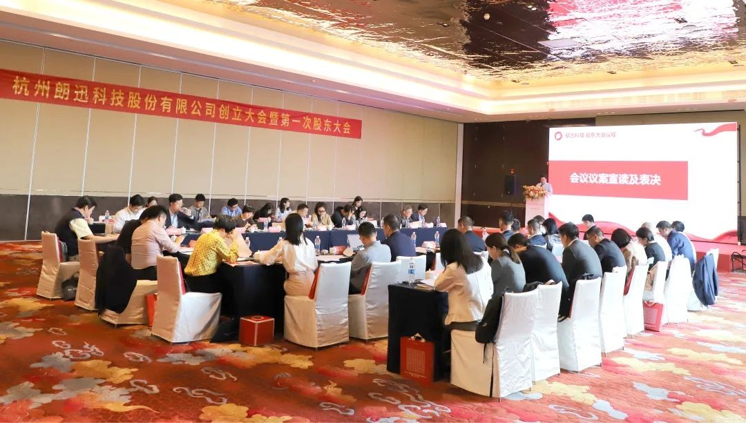 創(chuàng)立大會(huì)同期召開了第一屆股份公司股東大會(huì),大會(huì)主持人黃慶紅宣讀大會(huì)名單以及《杭州朗迅科技股份有限公司創(chuàng)立大會(huì)暨第一次股東大會(huì)會(huì)議須知》。大會(huì)主持人向股東大會(huì)宣讀了《杭州朗迅科技股份有限公司籌建工作報(bào)告》、《杭州朗迅科技股份有限公司章程》等十項(xiàng)議案后,股東代表對(duì)議案進(jìn)行逐項(xiàng)審議并表決,監(jiān)票人汪明珠宣讀了議案表決結(jié)果,形成決議備案。