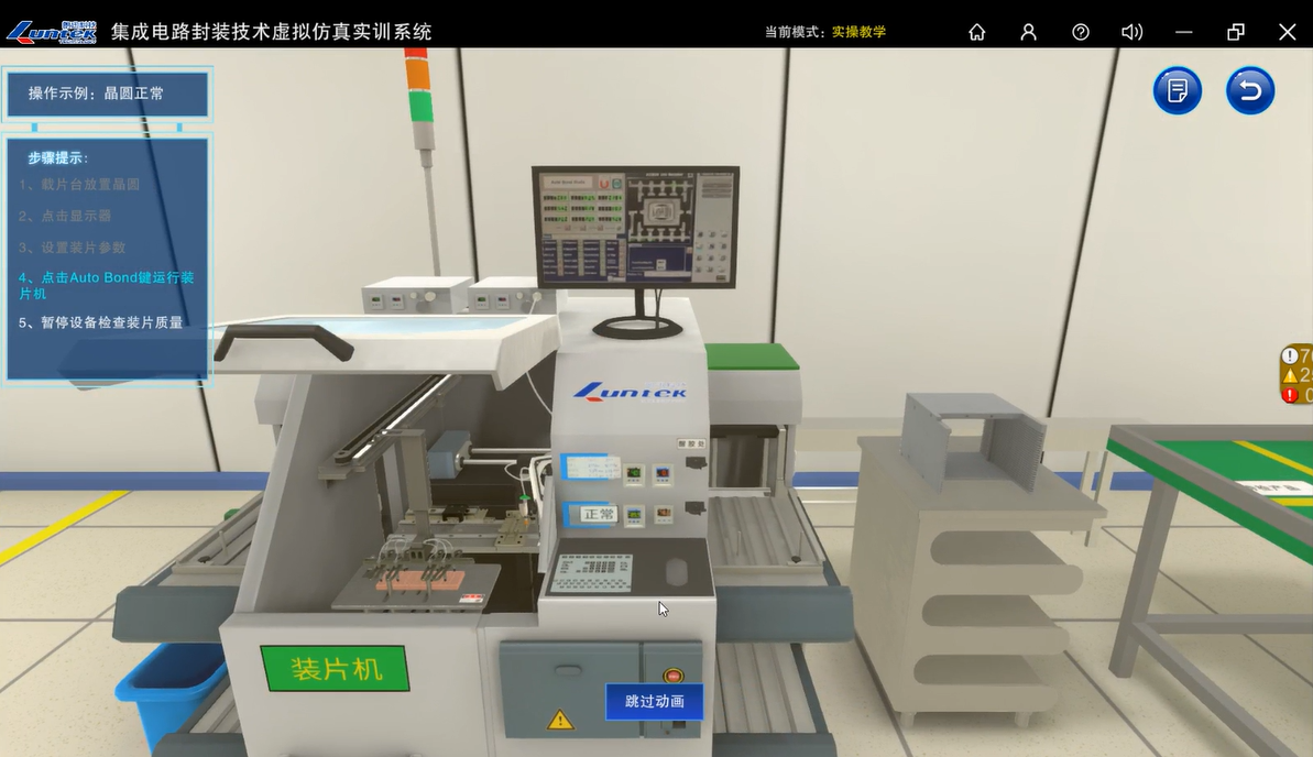 在元宇宙集成電路封裝數(shù)字工廠崗位上,有虛擬設(shè)備、工藝指導(dǎo)書等,完全按照真實崗位操作,我們可以在真實的數(shù)字崗位上,完成集成電路封裝崗位群的崗位實習(xí)。