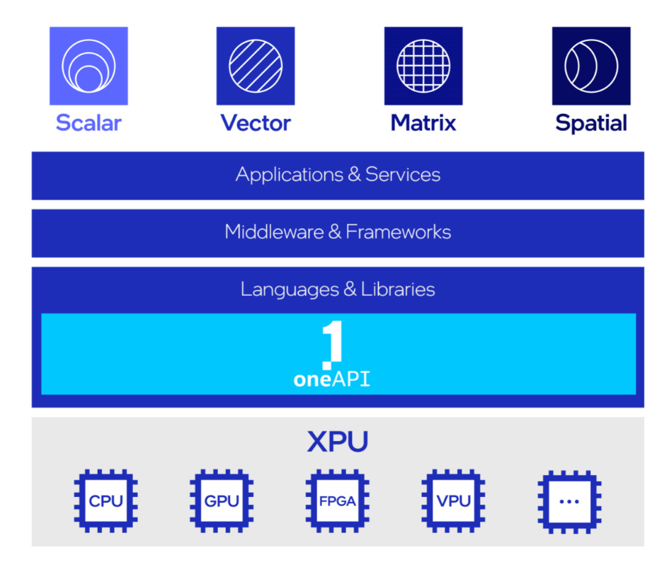 強(qiáng)大的硬件之外,英特爾還利用 oneAPI 軟件體系實(shí)現(xiàn)了對異構(gòu)硬件的統(tǒng)一編程和管理,構(gòu)建了能夠靈活調(diào)配、無縫協(xié)作和低門檻的 AI 開發(fā)工具。通過 XPU 硬件、oneAPI 軟件及 UCIe 開放標(biāo)準(zhǔn)的布局,英特爾已經(jīng)打造出了軟硬一體化的完整生態(tài)。