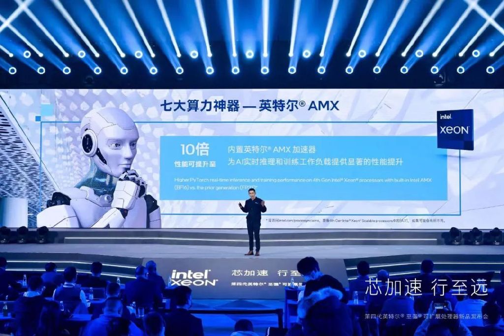今天,代號為「Sapphire Rapids」的第四代至強(qiáng)可擴(kuò)展處理器也在中國迎來發(fā)布首秀,除了一系列微架構(gòu)的革新和技術(shù)規(guī)格的升級外,新 CPU 對 AI 運(yùn)算「更上層樓」的支持也格外引人關(guān)注,其背后的技術(shù)助力,也是英特爾在這代產(chǎn)品中增添的全新內(nèi)置 AI 加速器 —— 英特爾高級矩陣擴(kuò)展(AMX)技術(shù)自然也成為了焦點(diǎn)。
