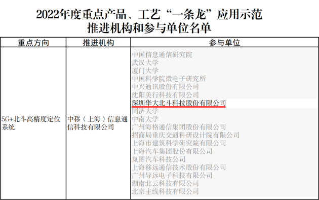 近日,工信部、國務(wù)院國資委發(fā)布《關(guān)于印發(fā)2022年度重點(diǎn)產(chǎn)品、工藝“一條龍”應(yīng)用示范方向和推進(jìn)機(jī)構(gòu)名單的通知》,國產(chǎn)北斗芯片設(shè)計(jì)企業(yè)華大北斗入選 5G+北斗高精度定位系統(tǒng)“一條龍”應(yīng)用示范參與單位。此次入選,標(biāo)志著華大北斗作為國內(nèi)北斗GNSS衛(wèi)星導(dǎo)航定位芯片領(lǐng)域頭部企業(yè),在“北斗+”和“+北斗”融合創(chuàng)新應(yīng)用領(lǐng)域的研發(fā)實(shí)力、產(chǎn)業(yè)化能力和上下游產(chǎn)業(yè)鏈整合能力等獲得國家部委的充分肯定。