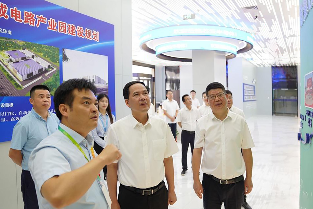 8月17日,紹興市委書記溫暖一行在諸暨檢查指導紹興市委九屆四次全會精神貫徹落實情況時,蒞臨芯云半導體(諸暨)有限公司調研。紹興市委常委、諸暨市委書記沈志江,諸暨市委常委董光輝參加,杭州朗迅科技股份有限公司董事長徐振陪同。